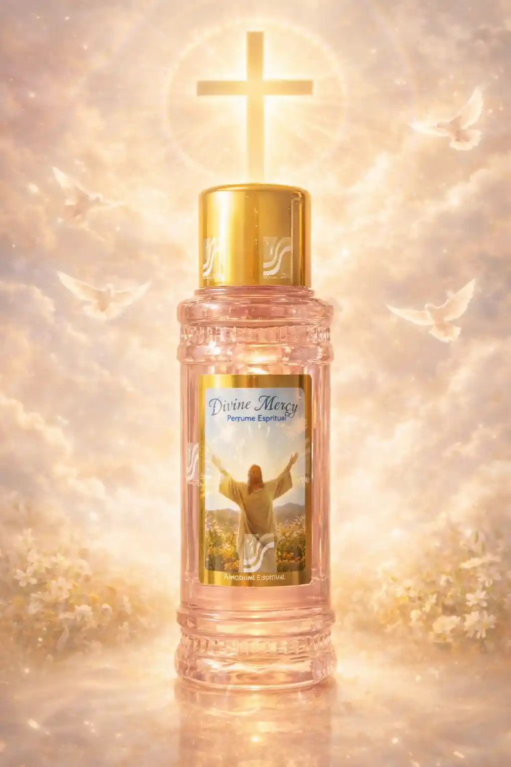 Step into a sacred embrace with Divine Mercy, a fragrance inspired by the boundless compassion and radiant love of Christ. Encased in a luminous pink bottle crowned with gold, this spiritual perfume evokes the serenity of divine presence and the warmth of heavenly grace.